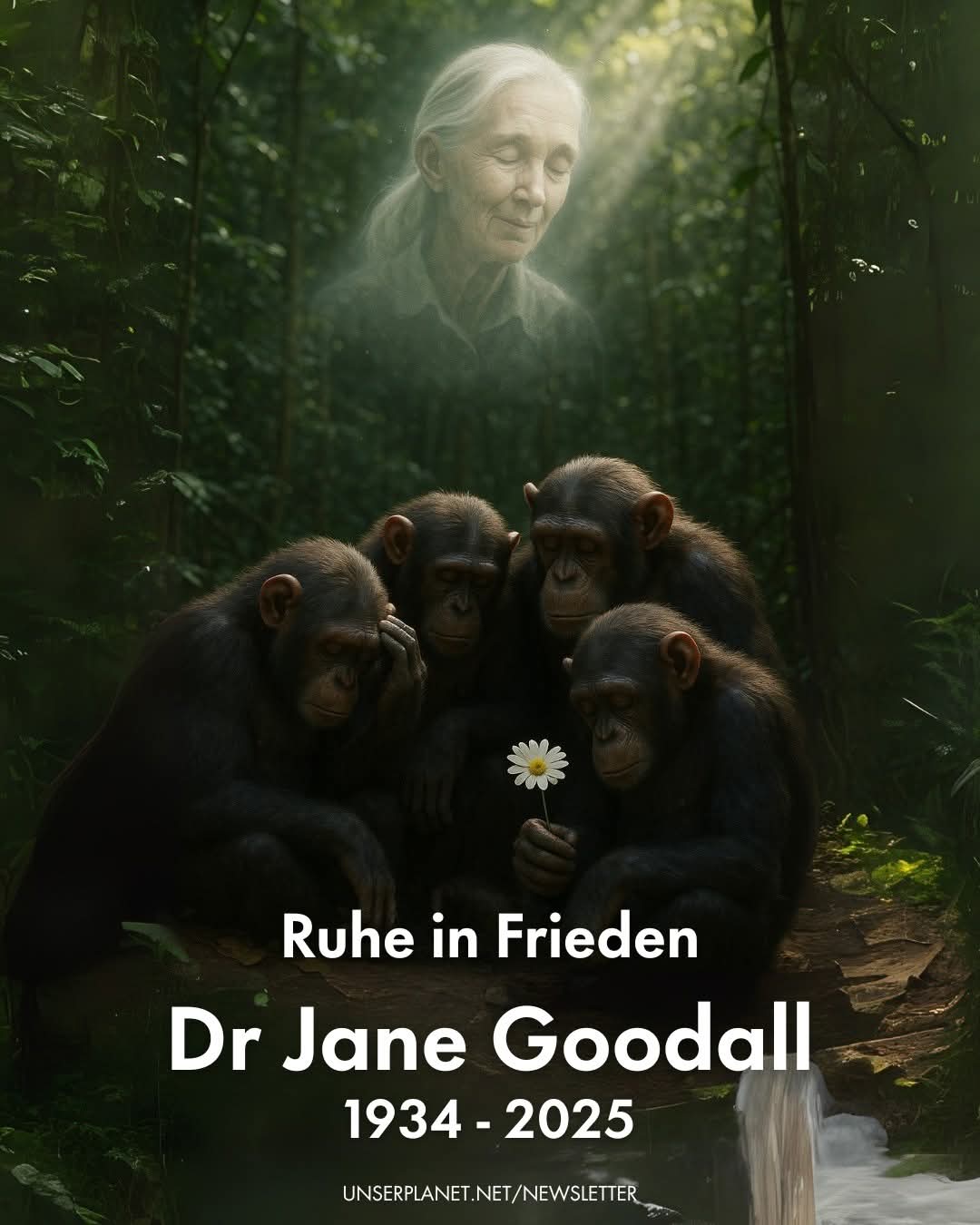 - Heute am 05.10.2025 aktualisiere ich meine Webseite aus einem traurigen Anlass. Die bekannte und sehr beliebte Primatenforscherin Jane Godall ist am 01.10.2025 verstorben. Ihr Wunsch war es aus dieser Welt eine bessere Welt zu machen. Dies verbindet uns schrieb ich auf Facebook. In Gedenken an sie habe ich ihr in einem Post das Lied aus meinem Musikbeitrag „Heal The World“ von Michael Jackson gewidmet. Das möchte ich nun auch hier tun: