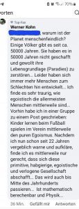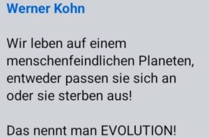- Heute am 18.07.2025 veranlassen mich wieder weitere Erfahrungen mit Menschen, – in erster Linie auf Facebook – welche meine Erkenntnisse und Äußerungen bezüglich des Homo sapiens bestätigen.