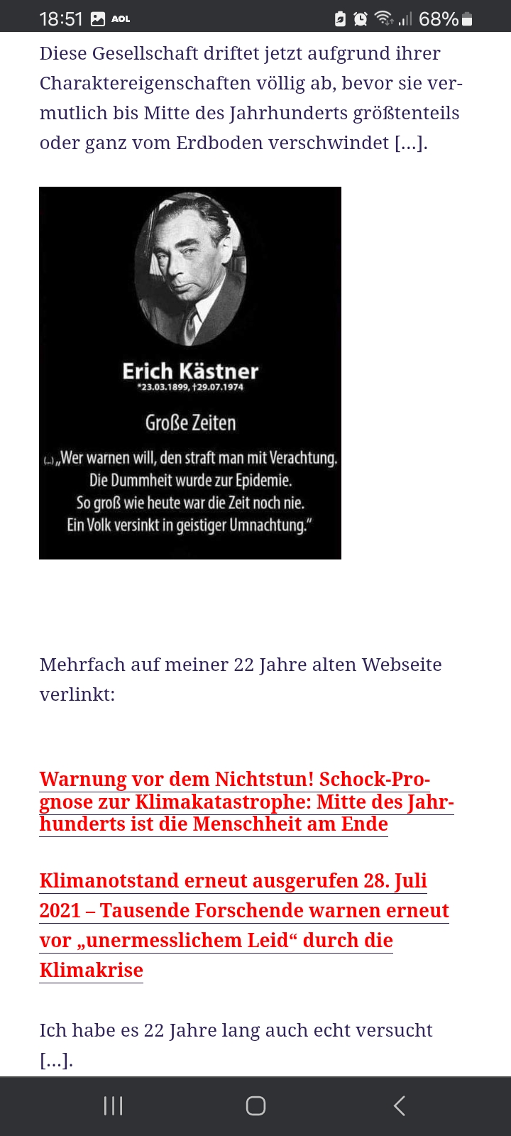 Professor Hoimar von Dithfurt warnte schon 1978 in seinen Fernsehsendungen „Der Ast auf dem wir sitzen“ vor unserem Weg in die Katastrophe […].